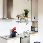 Een keuken is uitgerust met een magnetron, een waterkoker en een koelkast, evenals koffie- en theevoorzieningen. Dit appartement is in de nabijheid van de dichtstbijzijnde bushalte, Clocheville.